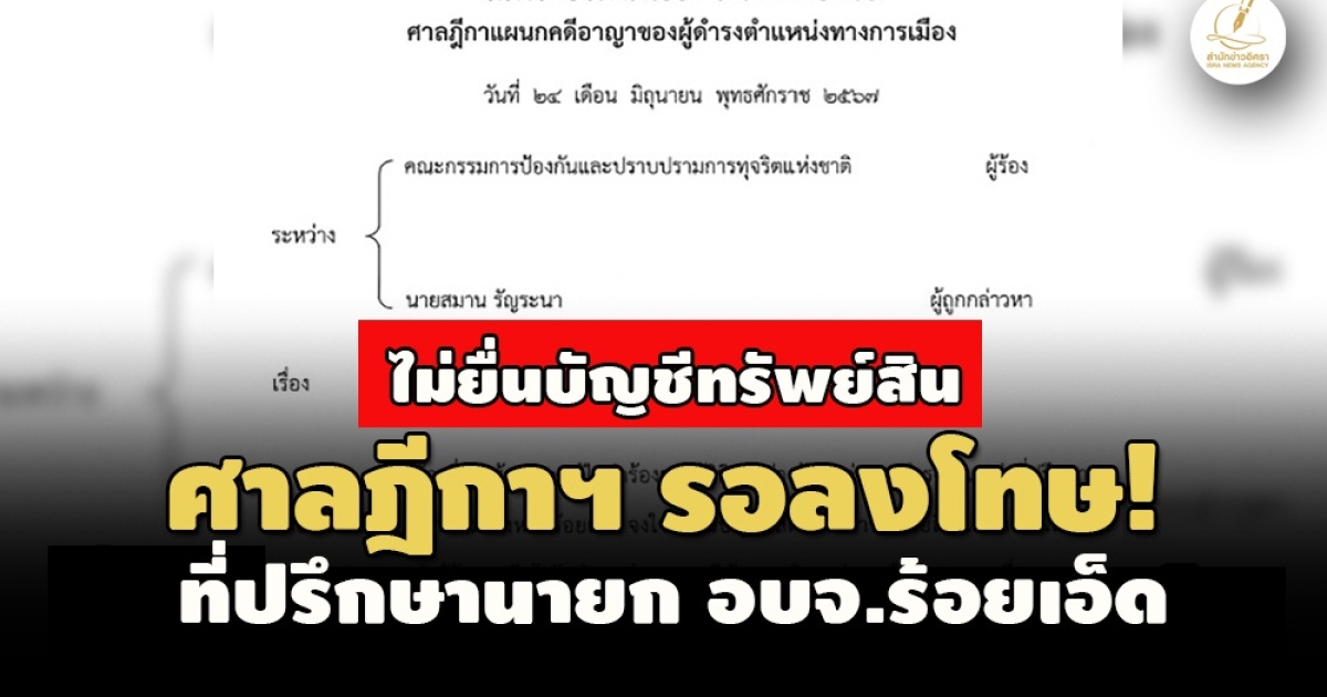 - ให้พ้นตำแหน่ง-ถอนสิทธิสมัครฯตลอดชีพ รองนายก อบต.บ้านป้อม อยุธยา ไม่ยื่นบัญชีฯ