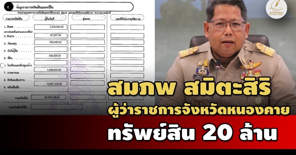 ป.ป.ช.เปิดทรัพย์สินผู้ดำรงตำแหน่งระดับสูง 'สมภพ สมิตะสิริ' ผู้ว่าราชการจังหวัดหนองคาย ทรัพย์สิน 20 ล. สะสมปืน-พระเครื่อง รายได้ 1.2 ล./ปี