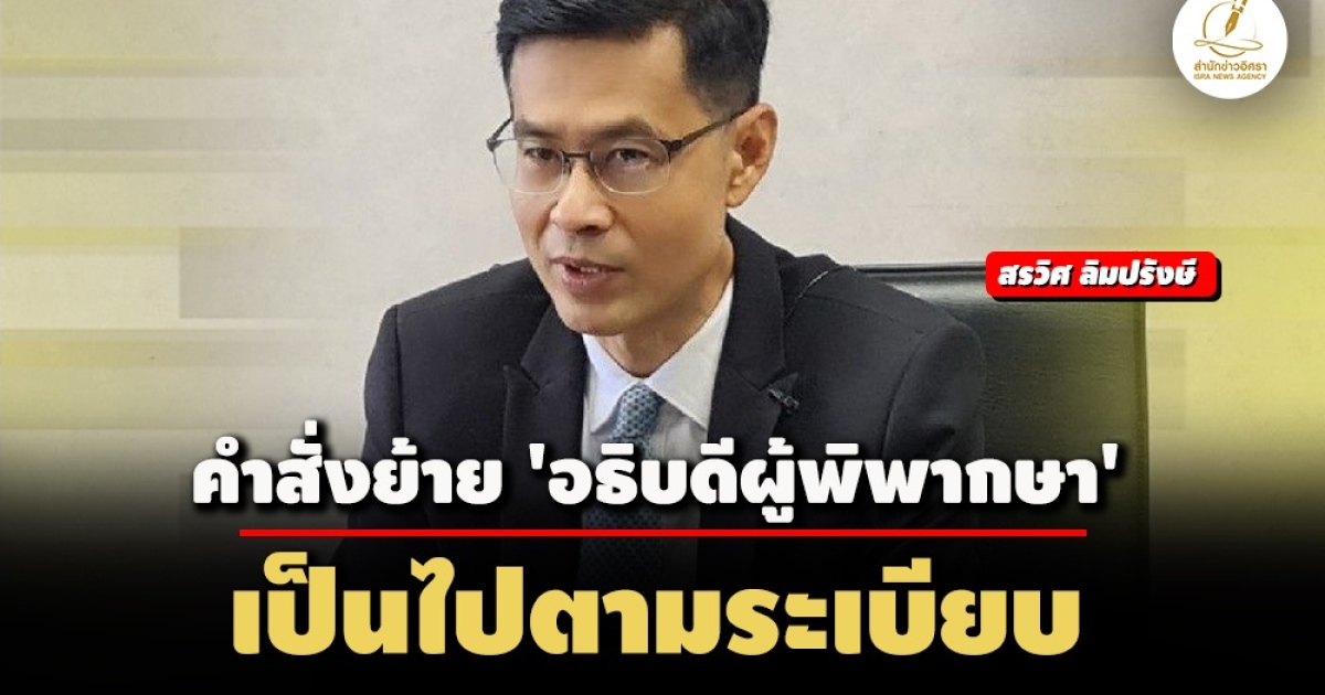 นายสรวิศ ลิมปรังษี โฆษกศาลยุติธรรม ระบุว่า กรณีสื่อมวลชนแห่งหนึ่งนำเสนอปัญหาการมีคำสั่งให้โยกย้ายอธิบดีผู้พิพากษาศาลชั้นต้นแห่งหนึ่ง ไปช่วยทำงานชั่วคราวในตำแหน่งผู้พิพากษาศาลฎีการะหว่างที่มีการตรวจสอบข้อร้องเรียน ในทำนองว่าคำสั่งดังกล่าวไม่เป็นไปตามระเบียบและกฎหมายที่เกี่ยวข้อง และบางกระแสมีข่าวด้วยว่าเป็นการสั่งให้ไปช่วยทำงานชั่วคราวในตำแหน่งผู้พิพากษาศาลฎีกา ประจำสำนักประธานศาลฎีกานั้น
