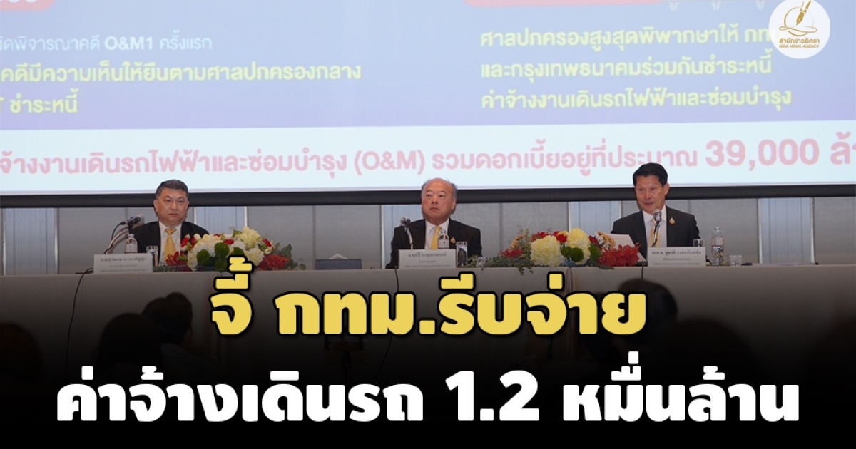 'คีรี' นำทีมผู้บริหาร BTS แถลงจี้ กทม.-กรุงเทพธนาคม รีบจ่ายหนี้เดินรถส่วนต่อขยาย 1-2 วงเงิน 1.2 หมื่นล้านบาท หลังศาลปกครองสูงสุดพิพากษาเมื่อ 26 ก.ค.ทีผ่านมา ชี้จ่ายช้า ดอกเพิ่มทุกวัน ก่อนกางหนี้เดินรถส่วน 1-2 ยังมีอีก 2 ก้อน รวมวงเงินทั้งหมดเกือบ 4 หมื่นล้านบาท