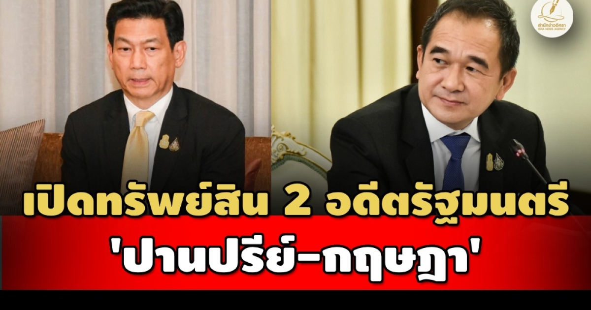 ป.ป.ช.เปิดทรัพย์สิน 2 รัฐมนตรีพ้นตำแหน่ง 'ปานปรีย์ พหิทธานุกร' ทรัพย์สิน 267 ล. เพิ่มขึ้น 105 ล. ภรรยามีที่ดินในกทม. 7 แปลง 150 ล.-'กฤษฎา จีนะวิจารณะ' ทรัพย์สิน 81 ล. เพิ่มขึ้น 7 ล. มีหุ้นกู้ 'กัลฟ์ เอ็นเนอร์จี' 40 ล. แจ้งสถานะโสด