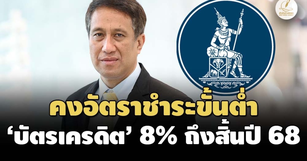 ‘ธปท.’ประกาศคงอัตราชำระขั้นต่ำ ‘บัตรเครดิต’ ที่ 8% ถึงสิ้นปี 68 หาก ‘ชำระหนี้ขั้นต่ำ’ เท่ากับหรือเกิน 8% จะได้รับเครดิตเงินคืน 0.5% พร้อมขยายเวลาปิดจบ ‘หนี้เรื้อรัง’ เป็น 7 ปี จากเดิม 5 ปี