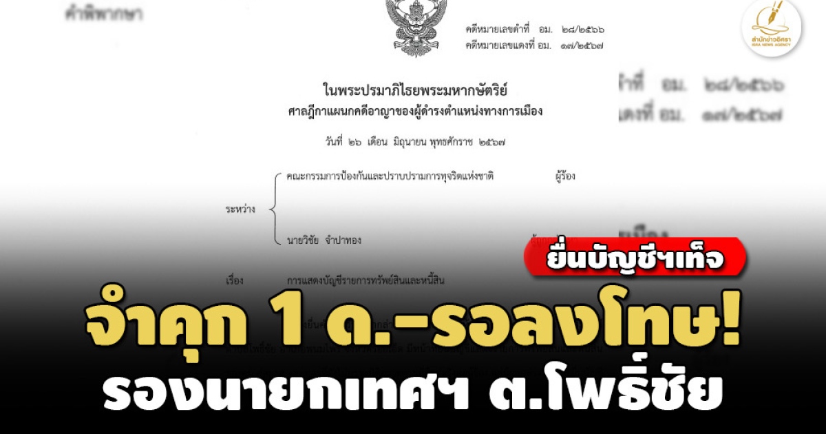 - จำคุก1 เดือน รองนายก อบต.บ้านใหม่ จ.พระนครศรีอยุธยา จงใจไม่ยื่นบัญชีฯ –รอลงโทษ