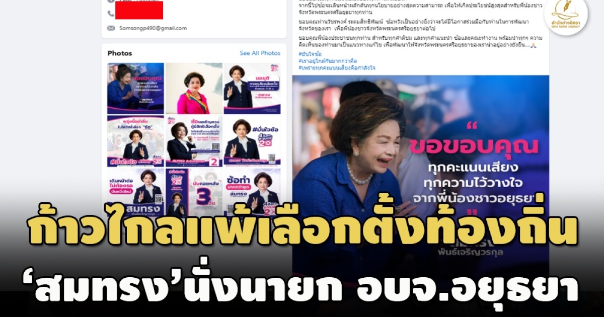 และต่อมาในช่วงเวลาประมาณ 21.55 น. นางสมทรงได้โพสต์ขอบคุณผ่านเฟซบุ๊กส่วนตัวระบุว่า 'ขอขอบคุณทุกคะแนนเสียงของทุกท่านที่มอบให้จากนี้ไปซ้อจะเดินหน้าผลักดันทุกนโยบายอย่างสุดความสามารถ เพื่อให้เกิดประโยชน์สูงสุดสำหรับพี่น้องชาวจังหวัดพระนครศรีอยุธยาทุกท่าน