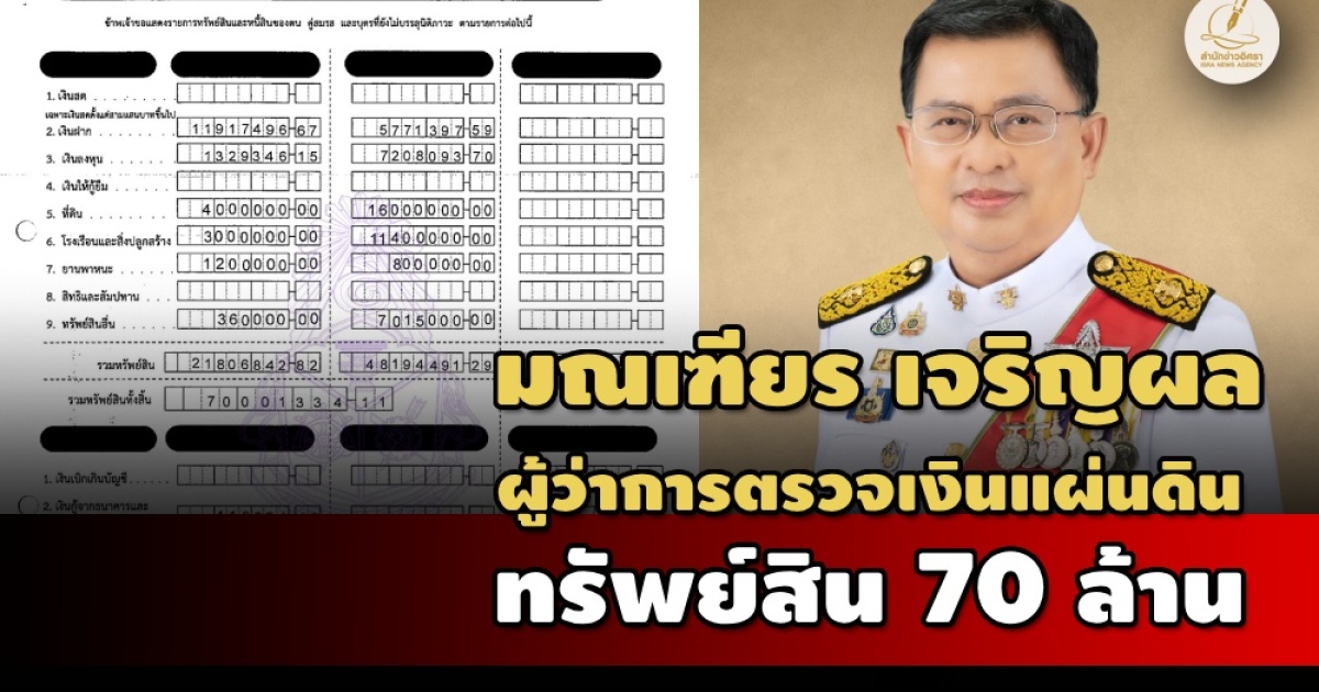 ป.ป.ช.เปิดบัญชีทรัพย์สินผู้ดำรงตำแหน่งในองค์กรอิสระ 'มณเฑียร เจริญผล' ผู้ว่าการตรวจเงินแผ่นดิน ทรัพย์สิน 70 ล. เงินฝาก 11 ล. รายได้ 2 ล./ปี