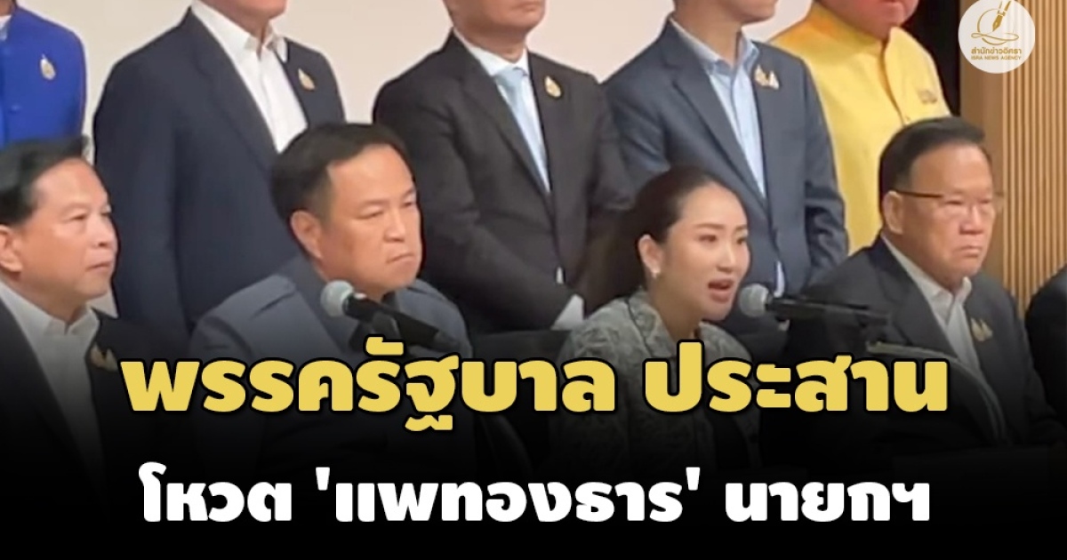 เป็นทางการ 'เพื่อไทย' จับมือ 'พรรคร่วม' แถลงยันโหวต 'แพทองธาร' เป็นนายกฯคนต่อไป เจ้าตัวขอบคุณพร้อมสานต่อเดินหน้าประเทศ ชี้เสียดาย 'เศรษฐา' พร้อมรับ 'หญิงอ้อ' ไม่อยากให้มาจริง แต่คุยกันแล้ว ส่วนจะสานต่อ แจกเงินหมื่นหรือไม่ รอถามความเห็น