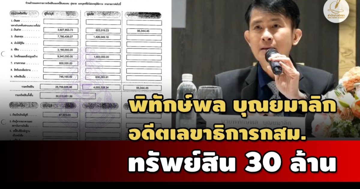ป.ป.ช.เปิดทรัพย์สินผู้ดำรงตำแหน่งระดับสูง 'พิทักษ์พล บุณยมาลิก' อดีตเลขาธิการกสม. ทรัพย์สิน 30 ล. เงินลงทุน 7 ล. รายได้ 2 ล./ปี
