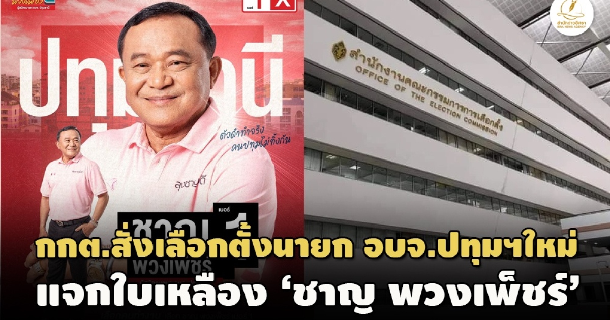 กกต.มีมติสั่งเลือกตั้งใหม่ นายก อบจ.ปทุมธานี เหตุเชื่อได้ว่า 'ชาญ พวงเพ็ชร์' ผู้ชนะเลือกตั้งมีพฤติกรรมจัดเลี้ยงหวังผลคะแนนเสียงเลือกตั้ง เผยเจ้าตัวโดนแค่ใบเหลือง ดังนั้นยังสมัครลงเลือกตั้งรอบหน้าได้