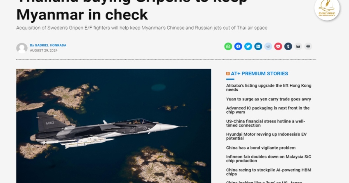 เรียบเรียงจาก:https://asiatimes.com/2024/08/thailand-buying-gripens-to-keep-myanmar-in-check/