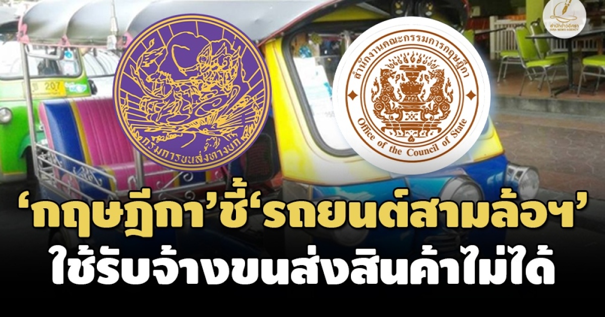 ‘คณะกรรมการกฤษฎีกา’ ตีความ ‘รถยนต์สามล้อส่วนบุคคล’ ใช้รับจ้างขนส่งสินค้า 'ไม่ได้' ชี้ขัด ‘พ.ร.บ.รถยนต์ฯ’ แนะ ‘ขบ.’ แก้กฎหมายที่เกี่ยวข้อง เปิดทางนำรถฯ ไปใช้รับจ้างขนส่งสินค้าฯ แต่ต้องคำนึงถึงความปลอดภัย