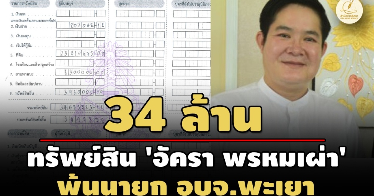 สำนักข่าวอิศรา (www.isranews.org) รายงานว่า เมื่อเร็ว ๆ นี้ สำนักงานคณะกรรมการการป้องกันและปราบการทุจริตแห่งชาติ (ป.ป.ช.) เปิดเผยบัญชีแสดงรายการทรัพย์สินและหนี้สินของผู้บริหารองค์กรปกครองส่วนท้องถิ่น ราย นายอัครา พรหมเผ่า นายกองค์การบริหารส่วนจังหวัดพะเยา กรณีพ้นจากตำแหน่ง เมื่อวันที่ 13 มิ.ย. 2567