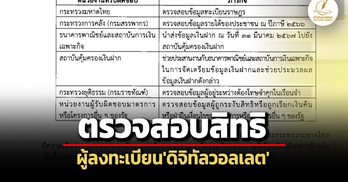 ครม.รับทราบความคืบหน้าโครงการ ‘ดิจิทัลวอลเลต’ พร้อมมอบ ‘สรรพากร-มท.-ยธ.-แบงก์-สถาบันคุ้มครองเงินฝาก’ ร่วมกันตรวจสอบสิทธิ ‘ผู้ลงทะเบียน’