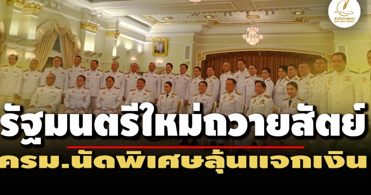 แพทองธาร ชินวัตร นายกรัฐมนตรี นำ รัฐมนตรี 35 คน เข้าเฝ้าถวายสัตย์ฯก่อนเข้ารับหน้าที่ เตรียมถก ครม.นัดพิเศษ พรุ่งนี้ เคาะ ร่างนโยบายรัฐบาล จับตา เงินดิจิทัลวอลเล็ต แจกเงินสด 4.5 แสนล้าน