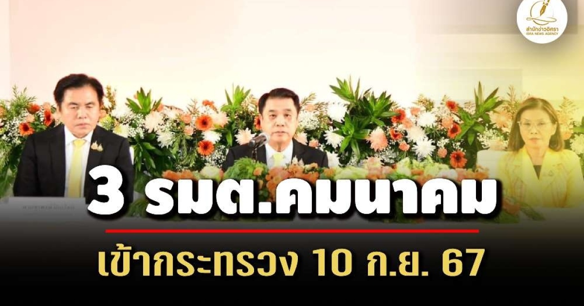 3 รัฐมนตรีกระทรวงคมนาคม 'สุริยะ-มนพร-สุรพงษ์' ตบเท้าเข้ากระทรวงอย่างเป็นทางการ 10 ก.ย.นี้ พร้อมเผยการแบ่งงานอาจยึดตามเดิม ไม่เปลี่ยน