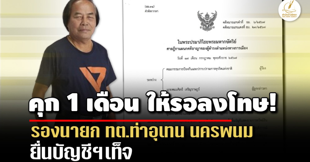- ศาลฎีกาฯพิพากษาจำคุกจริง 6 เดือน รองนายก อบจ.สกลนคร จงใจยื่นบัญชีฯเท็จ-ทำผิดซ้ำ