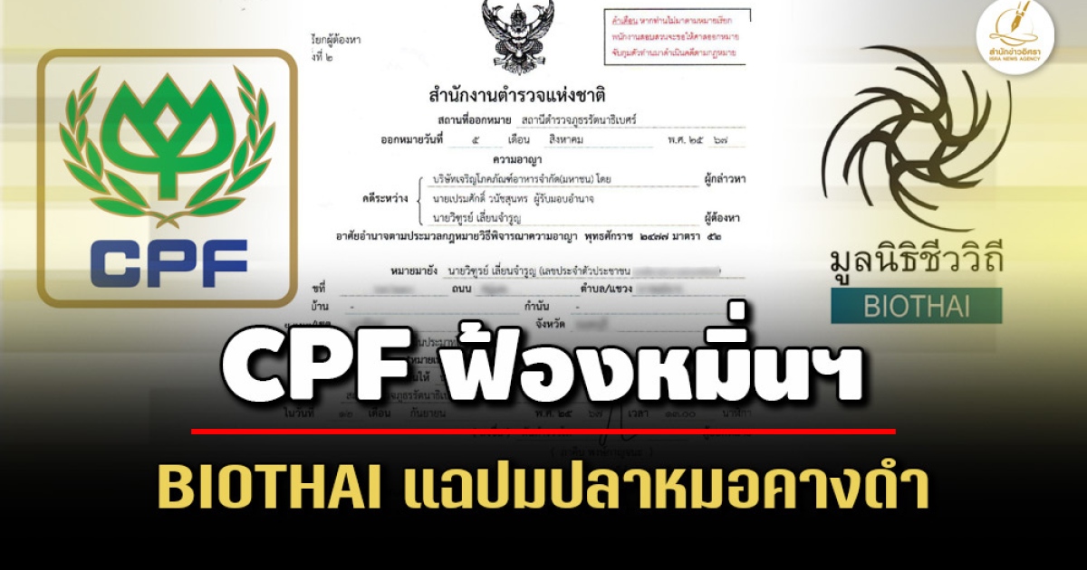 ซีพีเอฟ แจ้งความดำเนินคดี BIOTHAI ในข้อหาหมิ่นประมาทกรณีปลาหมอคางดำ ให้ไปพบตำรวจ 12 ก.ย.นี้ ด้านเลขาฯมูลนิธิเผยเพิ่งได้หมายครั้งแรก แต่ไม่ในหัวระบุครั้งที่ 2 ยันไม่มีเอกสารแนบ