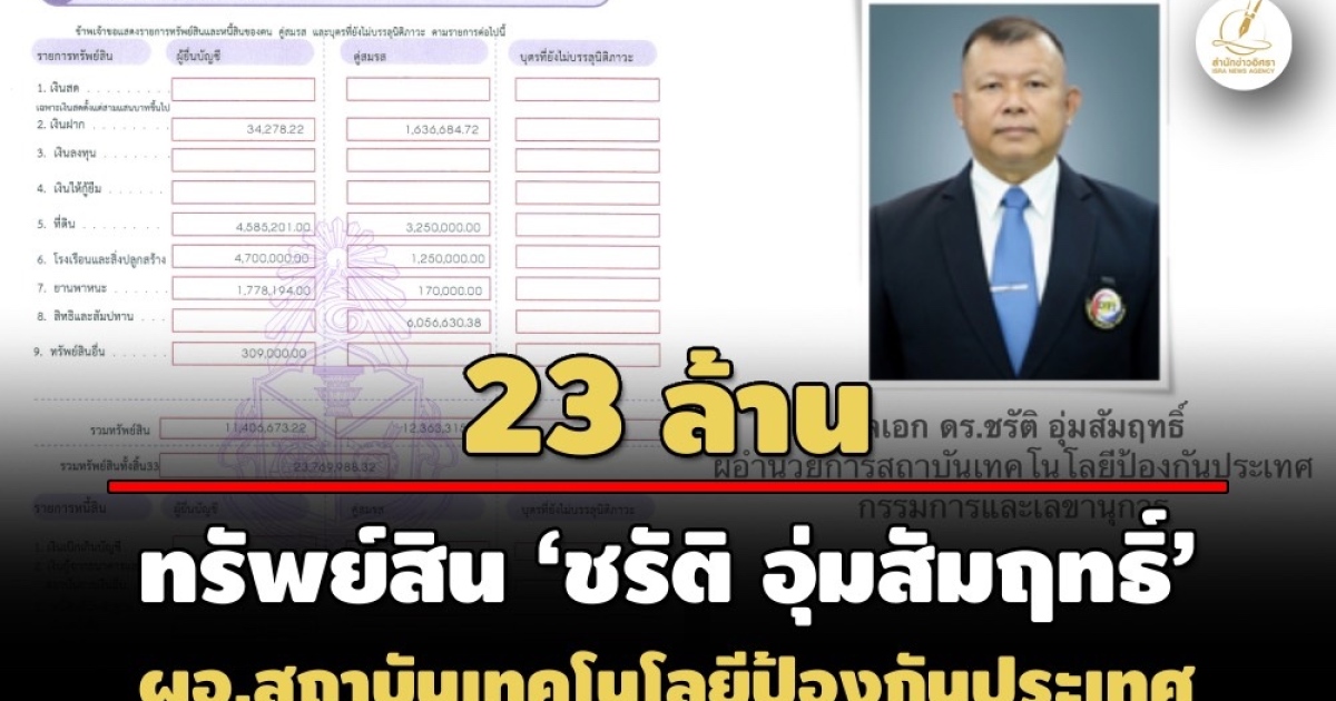 สำนักข่าวอิศรา (www.isranews.org) รายงานว่า เมื่อเร็ว ๆ นี้ สำนักงานคณะกรรมการการป้องกันและปราบการทุจริตแห่งชาติ (ป.ป.ช.) เปิดเผยบัญชีแสดงรายการทรัพย์สินและหนี้สินของผู้ดำรงตำแหน่งระดับสูงราย พลเอก ชรัติ อุ่มสัมฤทธิ์ ผู้อำนวยการสถาบันเทคโนโลยีป้องกันประเทศ (สทป.) กรณีเข้ารับตำแหน่ง เมื่อวันที่ 27 มิ.ย. 2567