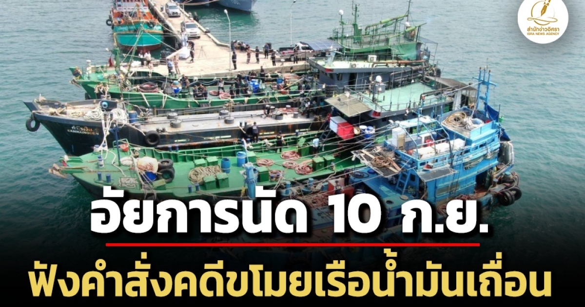 คณะทำงานอัยการนัดฟังคำสั่งคดีขโมยเรือขนน้ำมันเถื่อนนัดแรก 10 ก.ย. หลังกองปราบฯ ส่งสำนวน 6,240 แผ่น พร้อมความเห็นควรสั่งฟ้องตั้งแต่ 30 ส.ค. พบมีผู้ต้องหา 3 รายถูกตั้งข้อหาฟอกเงิน