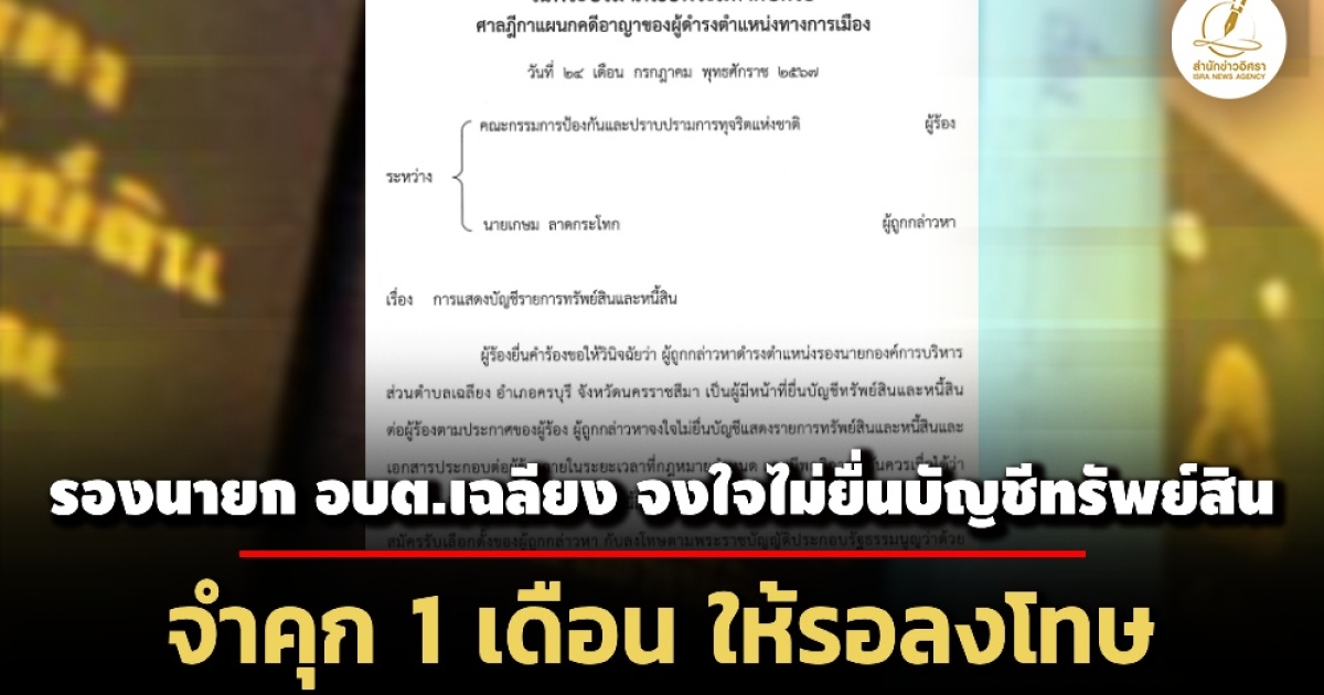 ศาลฎีกาฯสั่งคุก1 เดือน-รอลงโทษรองนายก อบต.เฉลียง นครราชสีมาไม่ยื่นบัญชีฯ