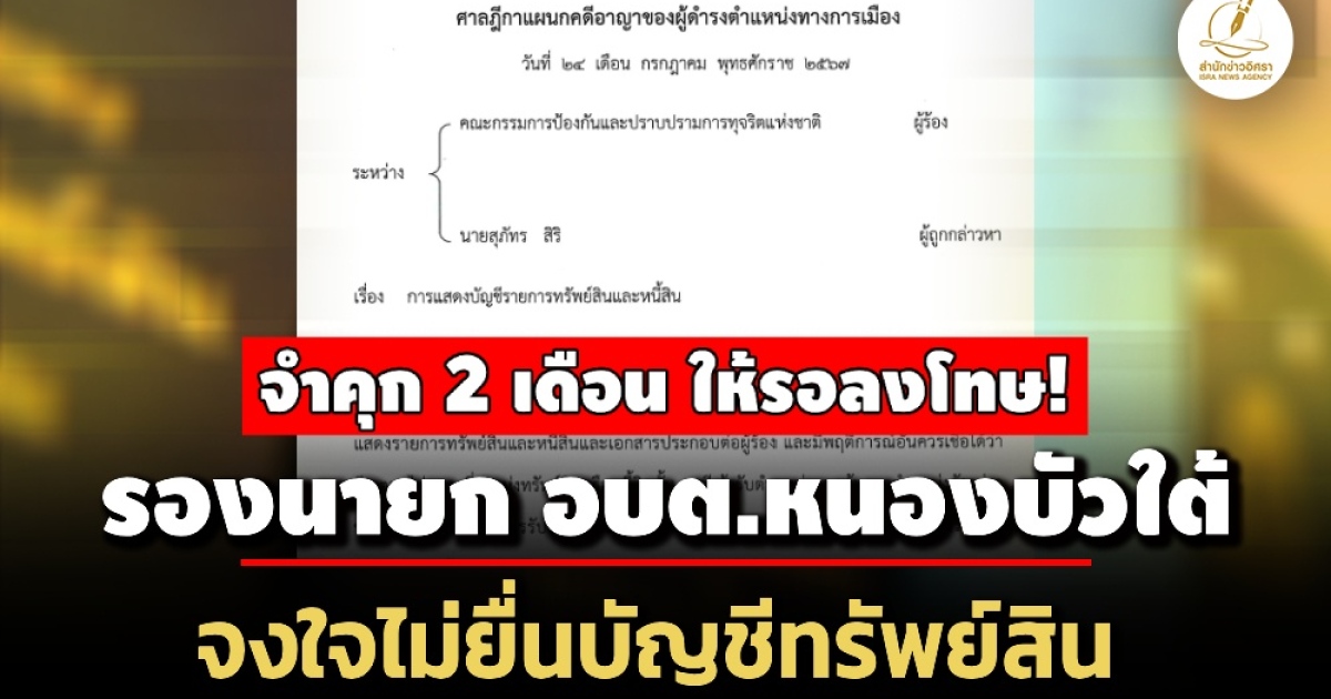 จำคุก1 เดือน รองนายก อบต.บ้านใหม่ จ.พระนครศรีอยุธยา จงใจไม่ยื่นบัญชีฯ –รอลงโทษ