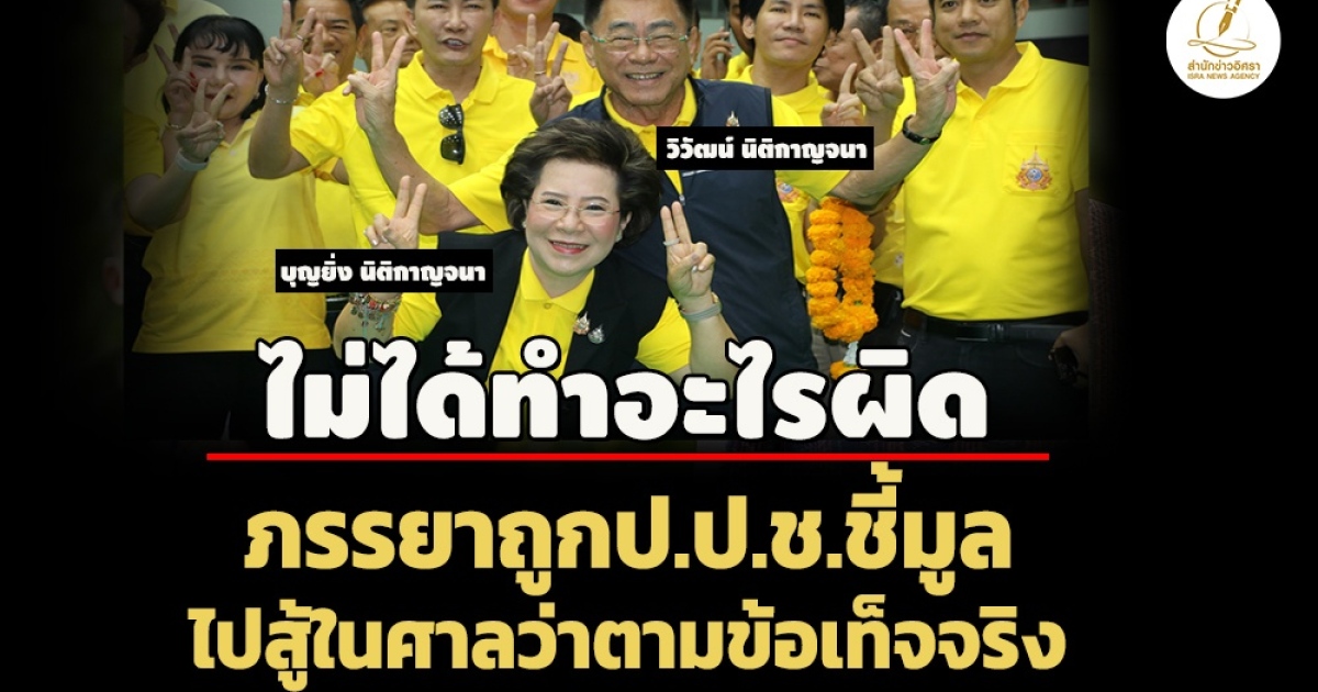 'บุญยิ่ง นิติกาญจนา' สส.พปชร. ปัดแจงถูก ป.ป.ช.ชี้มูลความผิดคดีระบายมันสำปะหลัง สำนวน 'พรทิวา นาคาศัย' อดีต รมว.พาณิชย์ ด้าน 'วิวัฒน์ หรือ กำนันตุ้ย นายก อบจ.ราชบุรี สามี ระบุไปสู้ในศาลว่าตามข้อเท็จจริง