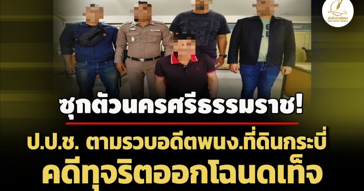 ป.ป.ช. บุกจับกุมตัวพนักงานที่ดิน จ.กระบี่ ผู้ต้องหาตามหมายจับคดีทุจริตออกโฉนดอ่าวนางเท็จ 33 แปลง หลังสืบทราบอาศัยอยู่ในพื้นที่ตำบลสามตำบล นครศรีธรรมราช นำตัวส่งอัยการสำนักงานฟ้องร้องดำเนินคดีศาลอาญาคดีทุจริตฯ ภาค 8