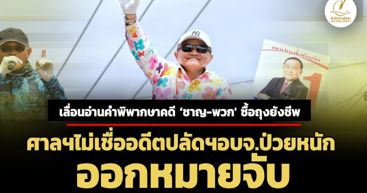 ศาลอาญาคดีทุจริตฯ ภาค 1 เลื่อนอ่านคำพิพากษา คดีกล่าวหา ‘ชาญ พวงเพ็ชร์ - พวก' ทุจริตจัดซื้อถุงยังชีพ ปี 2554 หลัง 'เดชา พวงงาม' อดีตปลัดฯ ยื่นคำร้องขอเลื่อนฟังคำพิพากษาอ้างมีการเจ็บป่วย โดนออกหมายจับ - นัดใหม่ 24 ต.ค.67