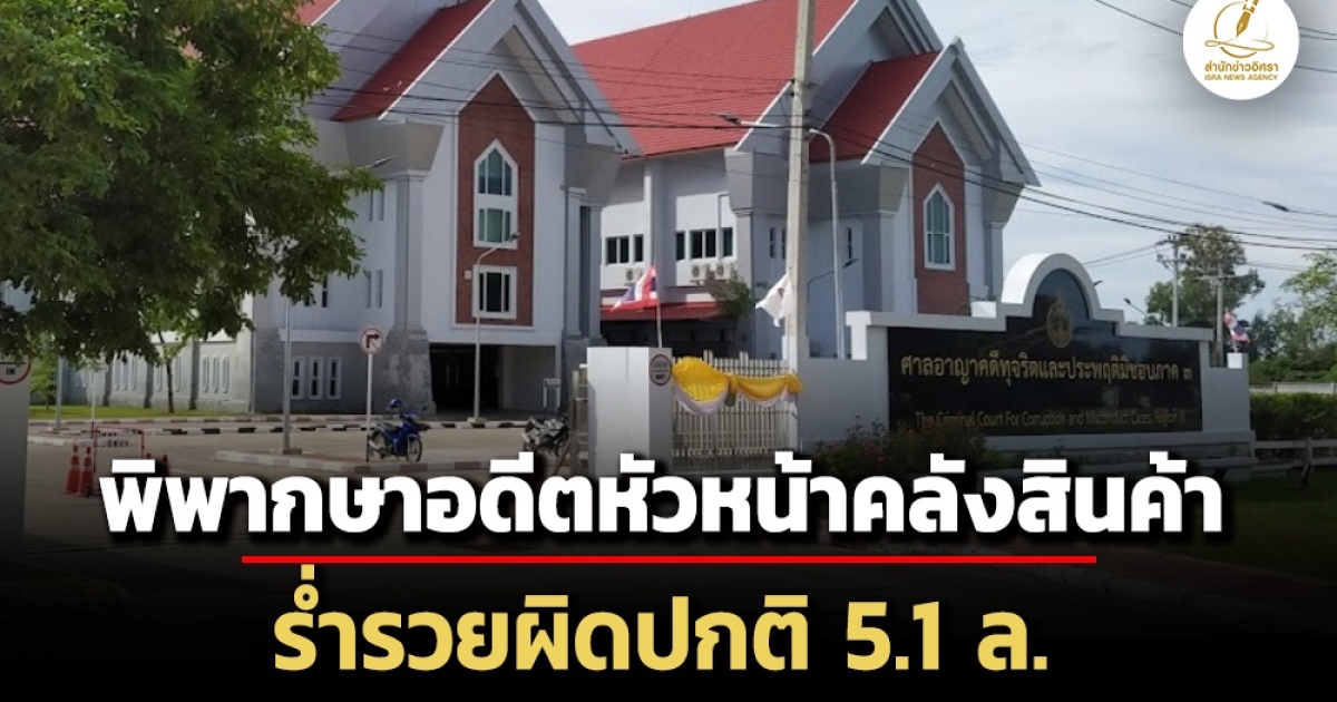 ป.ป.ช.เผยแพร่คำพิพากษาศาลอาญาคดีทุจริตฯ ภาค 3 พิพากษาอดีตหัวหน้าคลังสินค้า บ.ไทยชูการ์ฯ มีพฤติกรรมร่ำรวยผิดปกติ เหตุมีธุรกรรมเข้า 2 บัญชี ช่วงปี 45-51 รวม 5.1 ล.