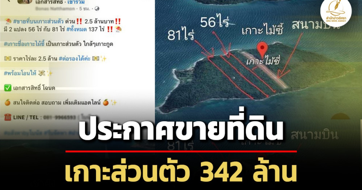 หรา!ประกาศขายที่ดินบนเกาะไม้ซี้ ส่วนตัว ใกล้เกาะกูด จ.ตราด 2 แปลง 137 ไร่ 342.5 ล้าน อ้างมีโฉนด ด้าน จนท.อุทยานเผย อยู่นอกเขต มีเอกสารสิทธิ์ ซื้อ-ขายได้