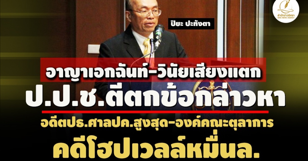 ป.ป.ช.เสียงเอกฉันท์ตีตกข้อกล่าวหาอาญา 'ปิยะ ปะตังทา' อดีตปธ.ศาลปกครองสูงสุด -องค์คณะตุลาการ 5 คน กรณีไม่นำเรื่องเข้าพิจารณาที่ประชุมใหญ่- กลับคำพิพากษาคดี บ.โฮปเวลล์ 11,888 ล้าน ชี้เป็นอำนาจอิสระตุลาการ ขาดพยานหลักฐานว่ามีการทุจริต ส่วนทางวินัยเสียงแตก 5 : 1 กก.ข้างน้อยให้ส่งผู้บังคับบัญชาลงโทษ