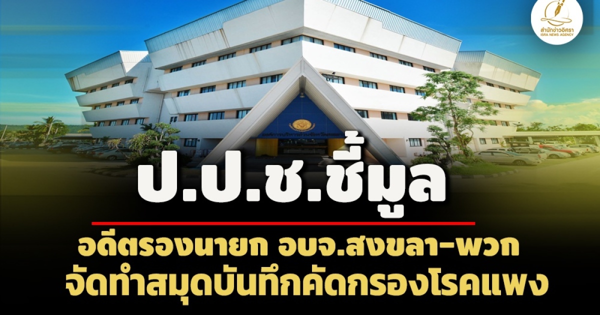 ป.ป.ช.ภาค 9 แถลงมติคณะกรรมการชุดใหญ่ ชี้มูลความผิด 'ยุทธพงศ์ มุณีสิทธิ์' อดีตรองนายก อบจ.สงขลา-พวก จัดทำสมุดบันทึกคัดกรองโรคขั้นพื้นฐานสำหรับครัวเรือนราคาสูงเกินสมควรเป็นไปโดยมิชอบ ส่งเรื่องอสส.ฟ้องร้องตามขั้นตอนทางกม. แจ้งชดใช้ค่าเสียหายด้วย