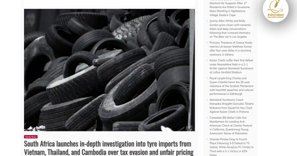 สำนักข่าวอิศรา (www.isranews.org) รายงานข่าวการสอบสวนกรณีเลี่ยงภาษีในต่างประเทศที่เชื่อมโยงกับประเทศไทยว่ามีรายงานข่าวระบุว่าทางการแอฟริกาใต้ได้ดำเนินการสืบสวนตลาดยางรถนต์อย่างใกล้ชิด และจะเฝ้าระวังการนำเข้ายางรถยนต์จากเวียดนาม ไทย และกัมพูชา