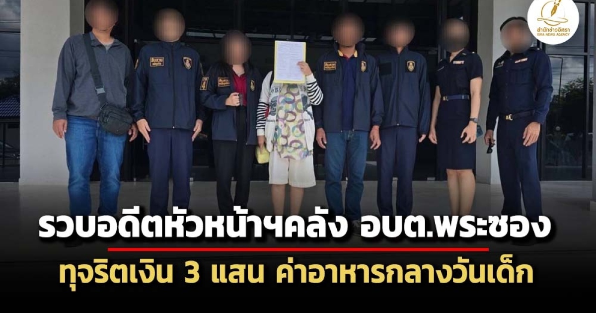 ป.ป.ช.รวบ อดีตหัวหน้าส่วนการคลัง อบต.พระซอง หนีหมายจับคดีเบียดบังทรัพย์ ศาล จ.นครพนม ตั้งแต่ ก.ค.64 เผยพฤติการณ์เจ้าตัวสมคบอดีตนายกฯ-อดีตปลัด อบต. ปลอมเอกสารเท็จเบิกจ่ายค่าอาหารกลางวันศูนย์พัฒนาเด็กเล็ก แก้ตัวเลขจาก 5,940 เป็น 305,940 บาท ก่อนนำเงิน 5 พันไปซื้อวัสดุคอมพิวเตอร์ นำเงิน 3 แสนไปใช้ประโยชน์ส่วนตน
