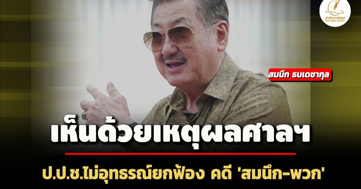 ป.ป.ช. ลงมติไม่อุทธรณ์คำพิพากษาศาลอาญาคดีทุจริตฯ ภาค 1 ยกฟ้อง 'สมนึก ธนเดชากุล' นายกเทศฯ นครนนท์-ปลัดฯ คดีตกแต่งภายในสนง. 100 ล. หลังเห็นด้วยเหตุผลศาลฯ ไม่มีพยานหลักฐานเชื่อมโยงถึงเจ้าตัว-พวก - สรุป 2 จนท.โดนคุกคนละ 3 ปี