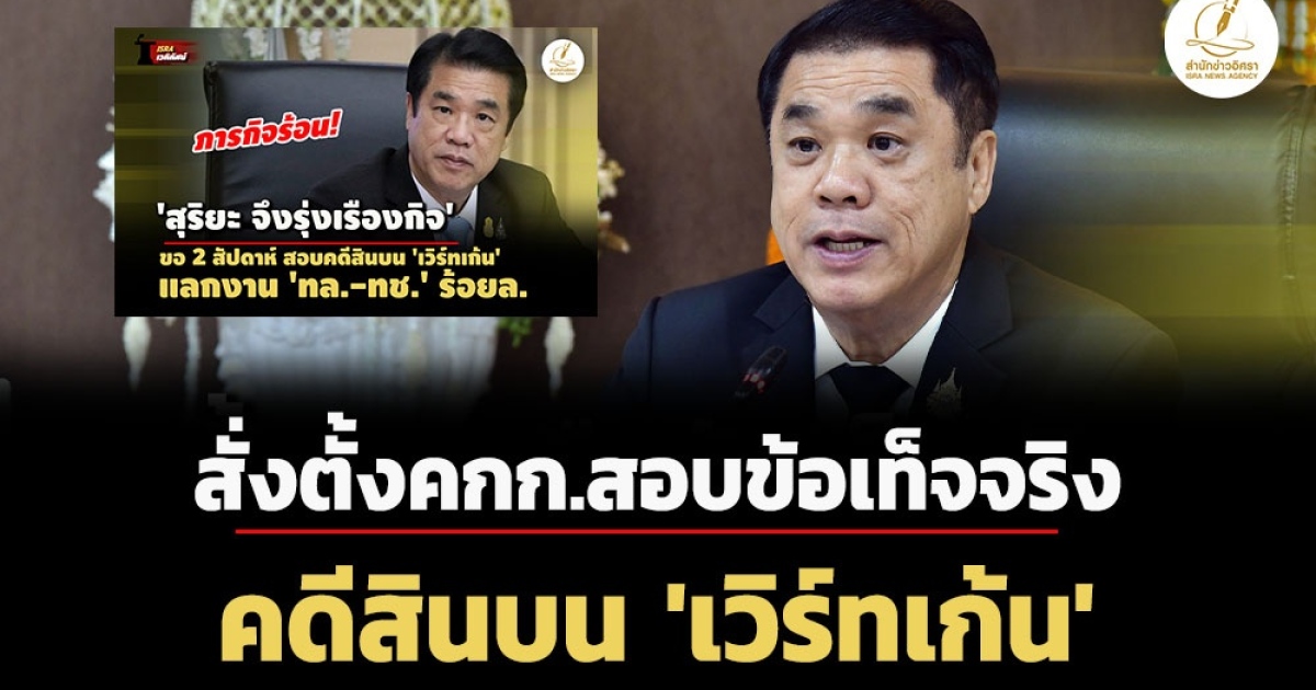 ‘สุริยะ จึงรุ่งเรืองกิจ’ สั่งการตั้งคกก.สอบข้อเท็จจริงคดีสินบน บ.เวิร์ทเก้น ในส่วน ทล.-ทช. แล้ว 'วิทยา ยาม่วง' รองปลัดกระทรวงคมนาคม นั่งประธาน ขีดเส้นต้องรายงานผลให้ทราบภายใน 15 วัน