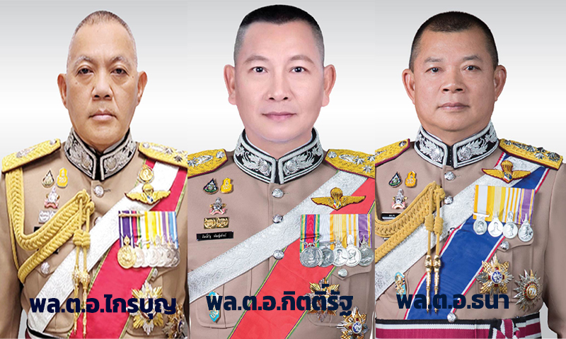พล.ต.อ.ไกรบุญ ทรวดทรง จเรตำรวจ-พล.ต.อ.กิตติ์รัฐ พันธุ์เพ็ชร์ รอง ผบ.ตร.-พล.ต.อ.ธนา ชูวงศ์ รอง ผบ.ตร. (ที่มาภาพ : สำนักงานตำรวจแห่งชาติ https://www.royalthaipolice.go.th/index.php)