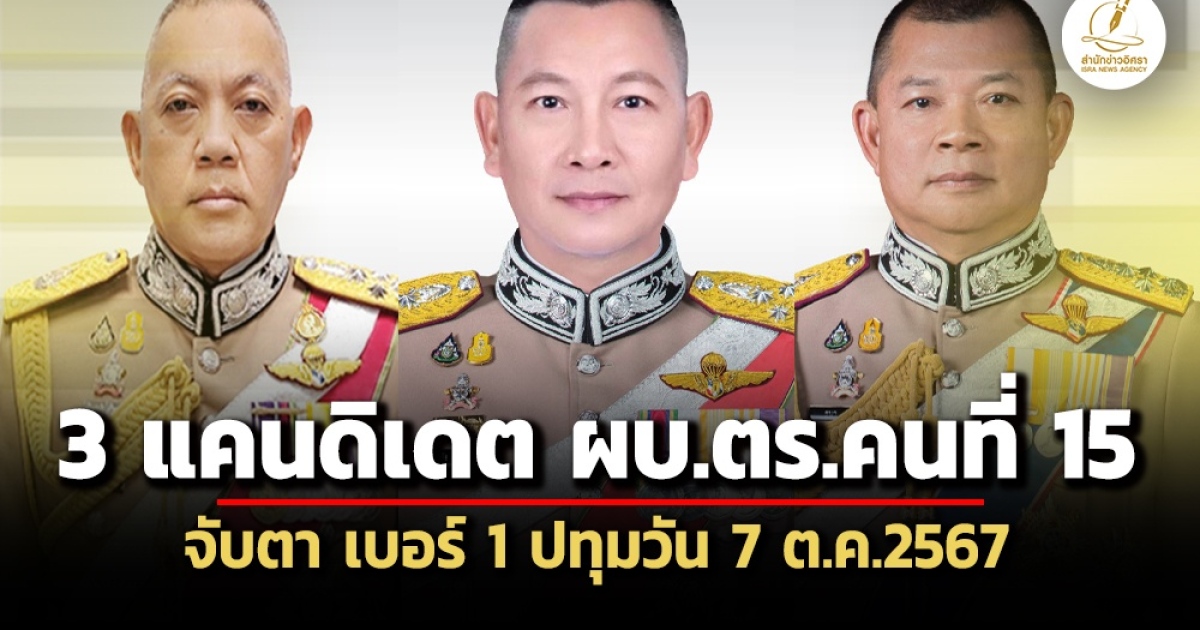 เปิดวาระการประชุม ก.ตร. 7 ต.ค.67 แพทองธาร เป็นประธาน จับตา 3 แคนดิเดตอาวุโสสูงสุด พล.ต.อ.กิตติ์รัฐ พันธุ์เพ็ชร์-พล.ต.อ.ไกรบุญ ทรวดทรง -พล.ต.อ.ธนา ชูวงศ์ ดำรงตำแหน่ง ผบ.ตร.คนใหม่-คนที่ 15