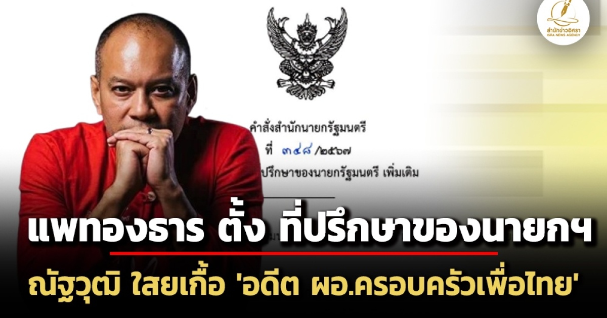สำนักข่าวอิศรา (www.isranews.org) รายงานว่า เมื่อวันที่ 4 ตุลาคม 2567 น.ส.แพทองธาร ชินวัตร นายกรัฐมนตรี ลงนามคำสั่งสำนักนายกรัฐมนตรี ที่ 348/2567 เรื่อง แต่งตั้งที่ปรึกษาของนายกรัฐมนตรี เพิ่มเติม ประกอบด้วย นายธีระพงษ์ วงศ์ศิวะวิลาส อดีตปลัดสำนักนายกรัฐมนตรี และนายณัฐวุฒิ ใสยเกื้อ อดีตผู้อำนวยการครอบครัวเพื่อไทย