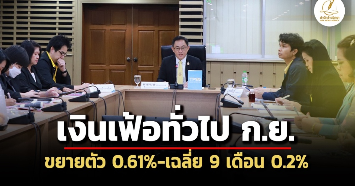 ‘พาณิชย์’ เผย ‘เงินเฟ้อทั่วไป’ ก.ย. ขยายตัว 0.61% เฉลี่ย 9 เดือนแรก 0.2% พร้อมปรับคาดการณ์เงินเฟ้อทั่วไปทั้งปี 67 เหลือ 0.2-0.8% จากเดิม 1-2% เผยผลสำรวจแจก ‘เงินหมื่น’ รอบแรก ช่วยเพิ่มกำลังซื้อ-ราคาสินค้าไม่เพิ่ม