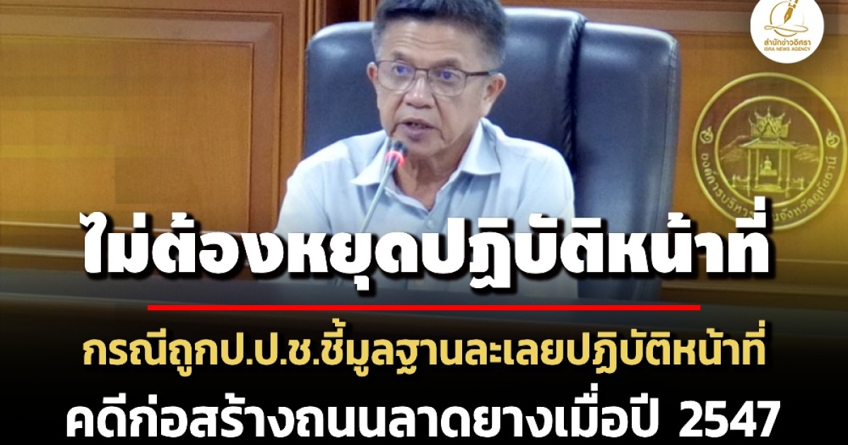 'เผด็จ นุ้ยปรี' นายกอบจ.อุทัยธานี แจงปมไม่ต้องหยุดปฏิบัติหน้าที่ กรณีถู กป.ป.ช.ชี้มูลฐานละเลยปฏิบัติหน้าที่คดีก่อสร้างถนนลาดยาง ปี 2547 ชี้ศาลชั้นต้นพิพากษายกฟ้อง