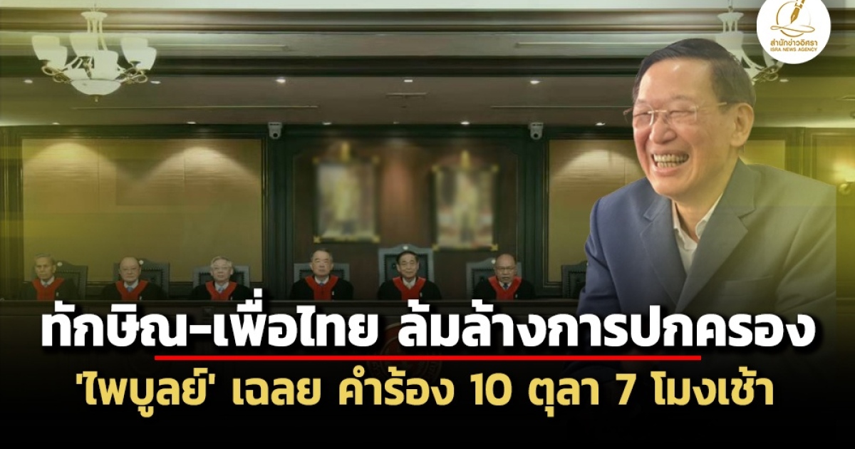 ไพบูลย์ นิติตะวัน เลขาธิการ พปชร. เฉลย 7 โมงเช้า 10 ตุลาคม ธีรยุทธ สุวรรณเกษร ยื่นคำร้อง-เอกสารประกอบ 5,080 แผ่น ชง ศาลรัฐธรรมนูญ สั่ง ทักษิณ-เพื่อไทย เลิกการกระทำล้มล้างการปกครอง