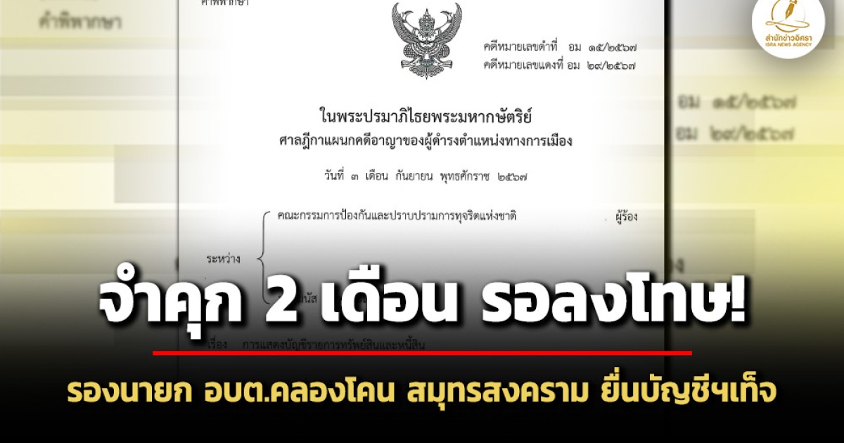 - ศาลฎีกาคุก 1 เดือน-รอลงโทษ! รองนายก อบต.ไทรทอง จ.สระแก้ว ไม่ยื่นบัญชีฯ