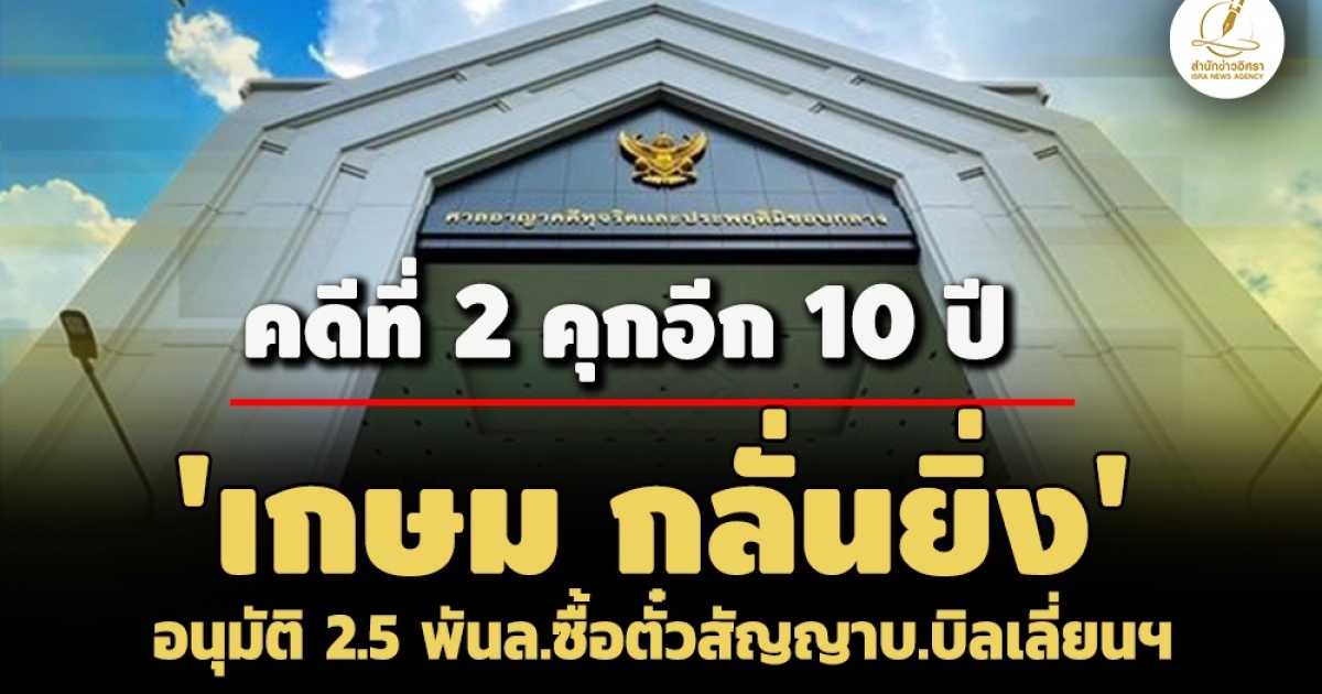 เผยแพร่ความคืบหน้าผลคดีกล่าวหา 'เกษม กลั่นยิ่ง' อดีต ปธ.ช.พ.ค.-พวก คดีที่ 2 อนุมัติเงิน 2.5 พ้นล้าน จัดซื้อตั๋วสัญญาใช้เงินบ.บิลเลี่ยนฯ โดยมิชอบ ล่าสุด ศาลอาญาคดีทุจริตประพฤติมิชอบกลาง พิพากษาลงโทษจำคุก 10 ปี พร้อมพวกหลายราย- ป.ป.ช.ขออุทธรณ์สู้ต่อ