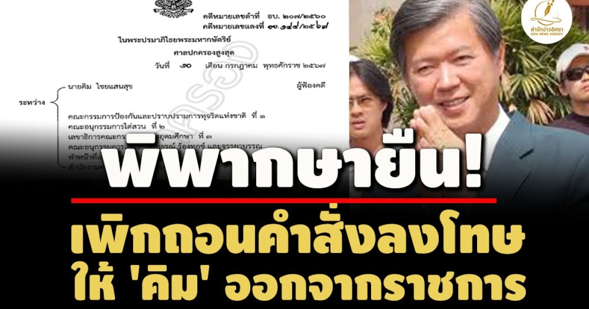 ศาลปกครองสูงสุด พิพากษายืนให้เพิกถอนคำสั่งสำนักงานคณะกรรมการอุดมศึกษา ลงโทษ 'คิม ไชยแสนสุข' อดีตรองอธิการบดี ม.รามคำแหง ออกจากราชการ เหตุพฤติการณ์ไม่อาจฟังได้ว่าใช้ตำแหน่งหน้าที่เอื้อประโยชน์ 3 อดีตผู้บริหาร 'รังสรรค์ -รำไพ-โฆษิต' มติ ป.ป.ช.ชี้มูลความผิดไม่ชอบด้วยกฎหมาย