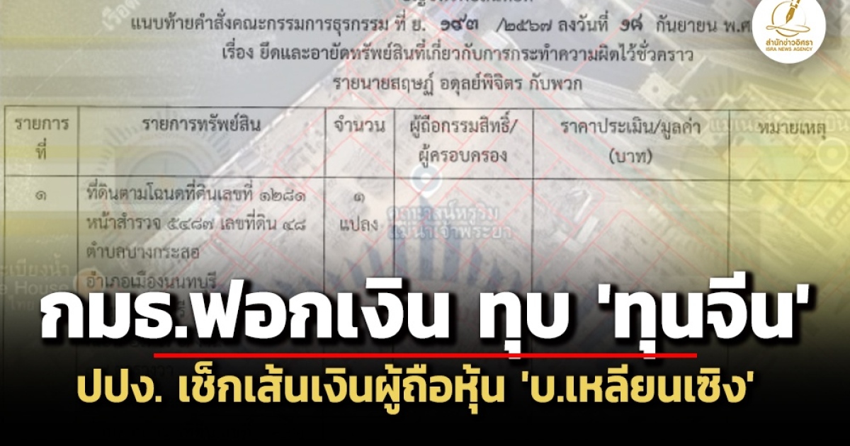 ‘คณะกรรมาธิการฟอกเงินฯ’ สภาฯ มีมติ ขอ ‘ปปง.’ ตรวจสอบเส้นทางการเงินผู้ถือหุ้น ‘บ.เหลียนเซิง’ - เข้ม เข้า-ออกไซต์งานก่อสร้าง ‘คฤหาสน์หรู ริมแม่น้ำเจ้าพระยา’ หลัง ‘คกก.ธุรกรรมฯ’ ปิดป้ายยึดทรัพย์ ‘ขีดเส้น’ รายงานความคืบหน้า 30 วัน