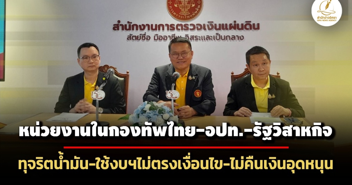 สตง.เผยผลตรวจสอบ หน่วยงานในสังกัดกองบัญชาการกองทัพไทยพื้นที่ภาคใต้ ปลอมลายเซ็นเบิกน้ำมัน 1 แสนลิตร ทำรัฐเสียหาย 18.25 ล.-อปท.จังหวัดนราธิวาส ใช้งบจัดซื้อจัดจ้างไม่ตรงตามเงื่อนไข 259 ล.-รัฐวิสาหกิจไม่ส่งคืนเงินอุดหนุนทั่วไป 90 ล.