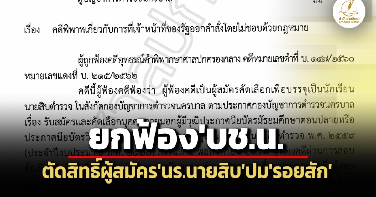 ‘ศาลปกครองสูงสุด’ พิพากษายกฟ้อง คดี ‘บช.น.’ตัดสิทธิ์ผู้สมัคร ‘นักเรียนนายสิบตำรวจ’ ไม่ผ่านการตรวจร่ายกาย หลังพบมี ‘รอยสัก’ ที่ยังเห็นได้ชัดเจน แม้ว่าจะเข้ารับการลบรอยสักแล้ว