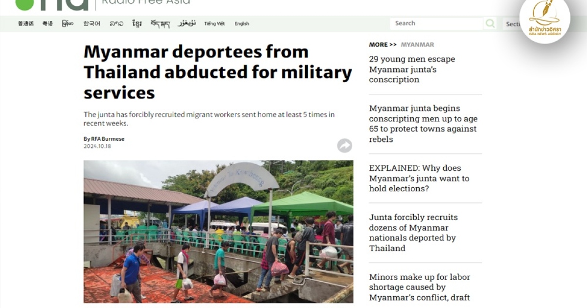 สำนักข่าวอิศรา (www.isranews.org) รายงานสถานการณ์การบังคับเกณฑ์ทหารของรัฐบาลทหารเมียนมาว่า สำนักข่าวเรดิโอฟรีเอเชียของสหรัฐอเมริกาได้รายงานตัวเลขว่าเมียนมาได้บังคับเกณฑ์ทหารกับแรงงานที่ประเทศไทยส่งตัวกลับด้วยข้อหาเข้าประเทศอย่างผิดกฎหมาย และอยู่เกินวีซ่า โดยมีการบังคับเกณฑ์เป็นจำนวนอย่างน้อยห้าครั้งในช่วงไม่กี่สัปดาห์ที่ผ่านมา และบางคนกล่าวว่าพวกเขาถูกปล่อยตัวหลังจากจ่ายเงินค่าไถ่เป็นจำนวนมากให้กับกองทัพ