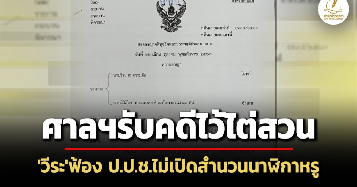 ศาลอาญาคดีทุจริตรับคดีไว้ไต่สวน กรณี 'วีระ' ยื่นฟ้อง 'นิวัติไชย-พวก 12 ราย' กรณี ป.ป.ช.ไม่เผยสำนวนคดีนาฬิกา 'บิ๊กป้อม' นัดตรวจพยานเอกสาร 19 ธ.ค.นี้