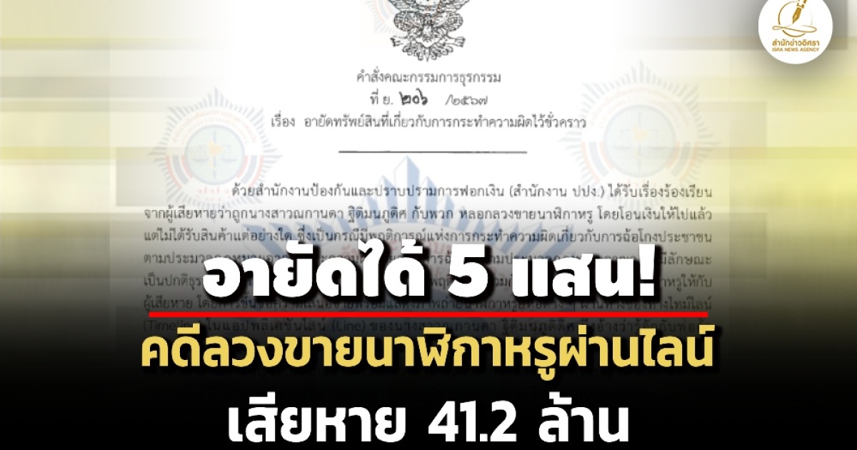 ปปง.ตามอายัดทรัพย์ได้ 5 แสนบ. คดีณกานดา ฐิติมนภูดิศ พวก ฉ้อโกงหลอกขายนาฬิกาหรูผ่านแอปพลิเคชันไลน์ อ้างรู้จักพ่อค้าในห้างดังสามารถซื้อได้ถูกกว่าท้องตลาด ในพื้นที่ จ.นนทบุรี พระนครศรีฯ กรุงเทพฯ ผู้เสียหาย 6 ราย 41.2 ล้าน